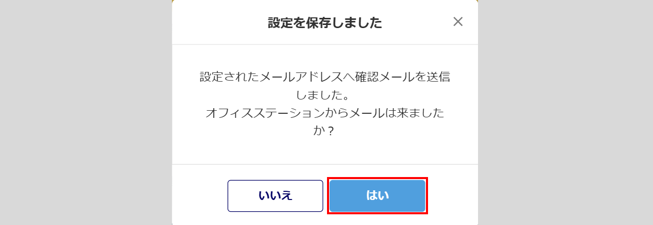 入力したメールアドレス宛に確認メールが届きます。メール確認後、[はい]をクリックします。