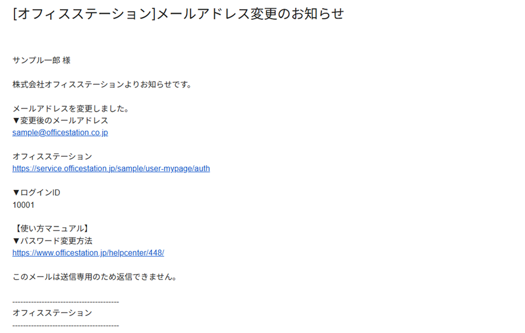 ※件名は「メールアドレス変更のお知らせ」、差出人は「no-reply@officestation.jp」です。