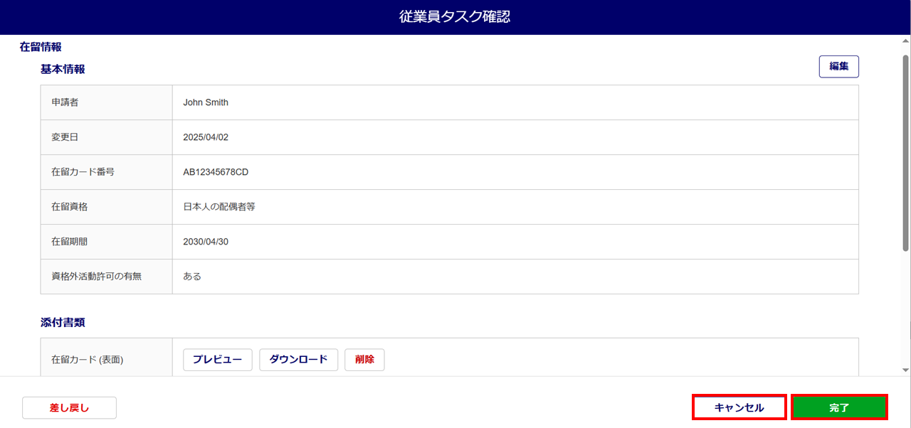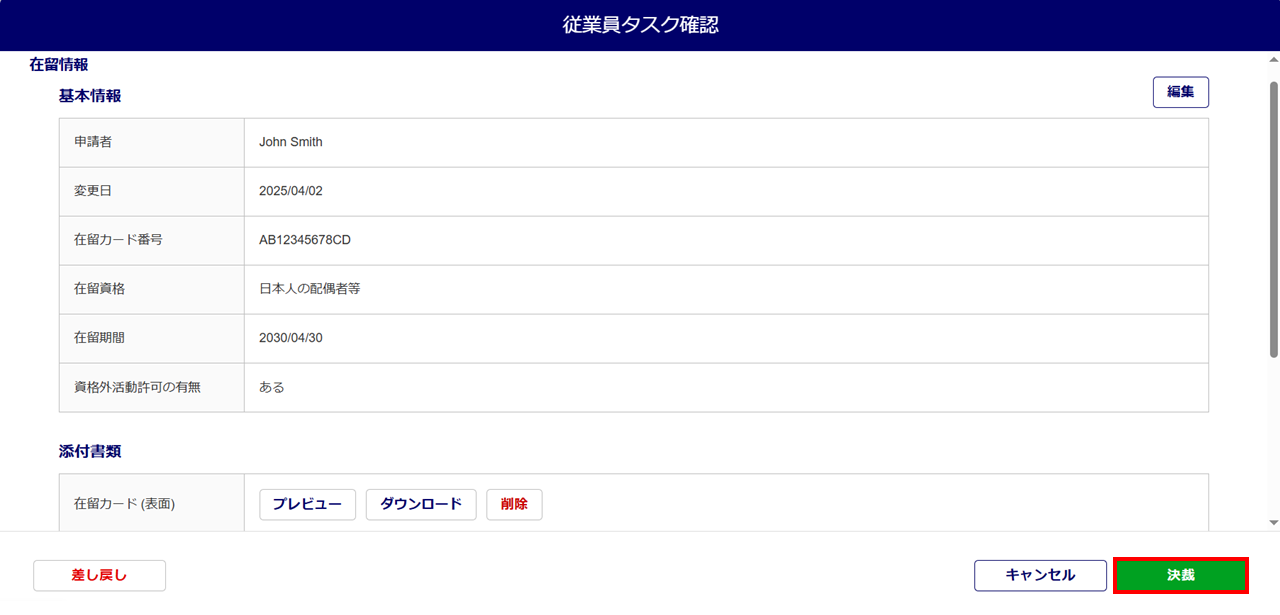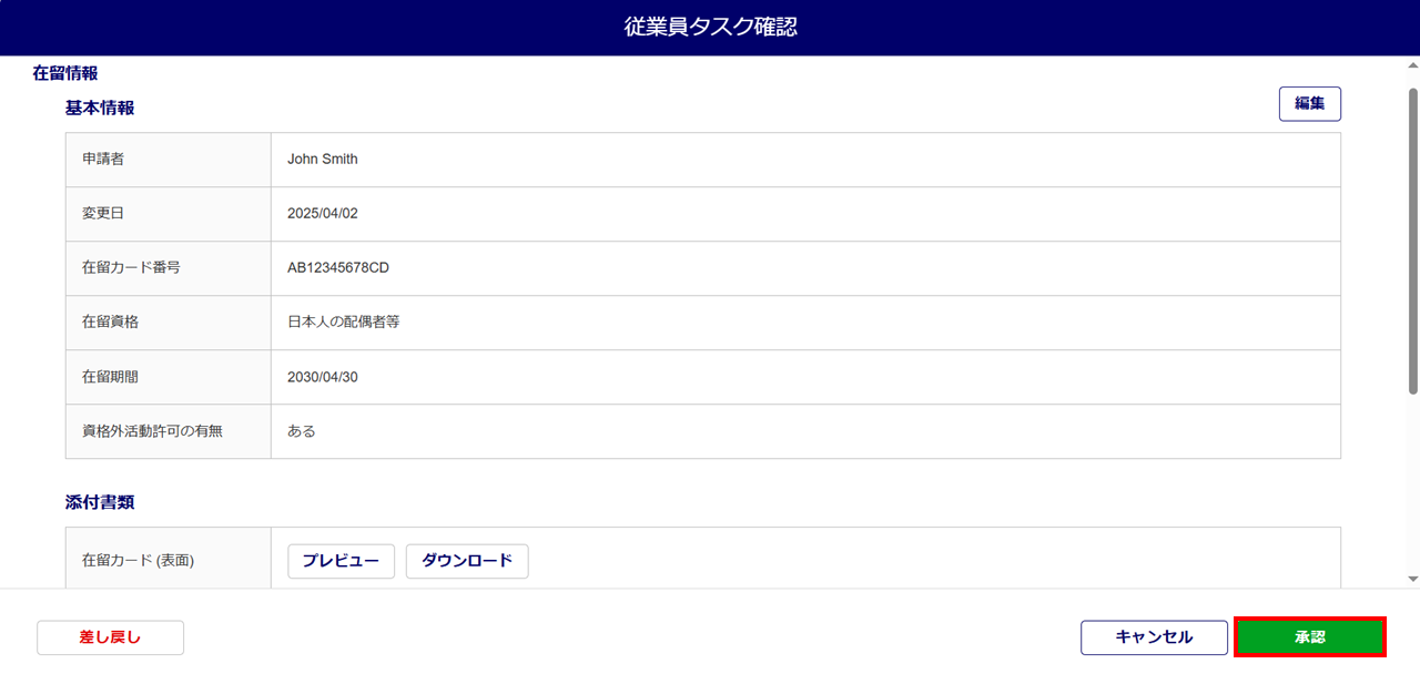在留期間の更新タスクの承認