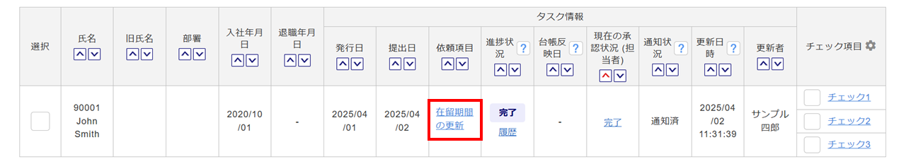 在留期間の更新タスクの内容確認