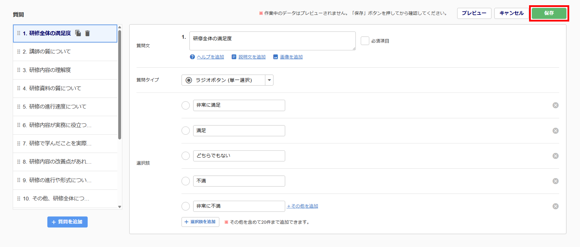 質問内容の編集