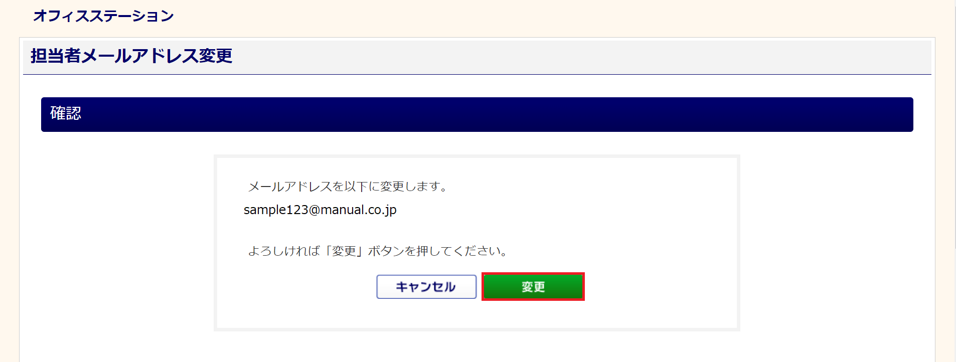 「担当者メールアドレスを変更しました。」と表示されたら、メールアドレスの認証作業は完了です。