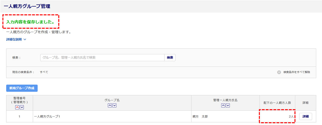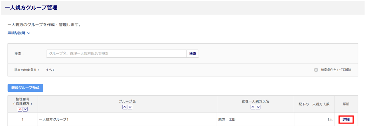 追加する一人親方グループの[詳細]をクリックします。