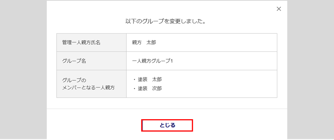 内容を確認し、[とじる]をクリックします。