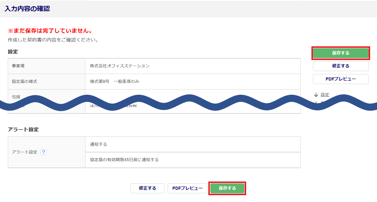 設定内容に誤りがなければ[保存する]をクリックします。