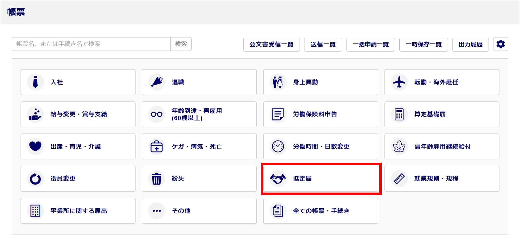 オフィスステーションで対応している協定届は、以下のとおりです。