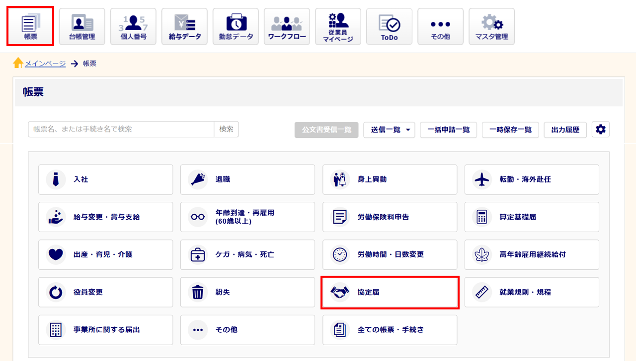協定届はオフィスステーションで電子申請をおこなった場合でも、申請結果は自動で反映しません。