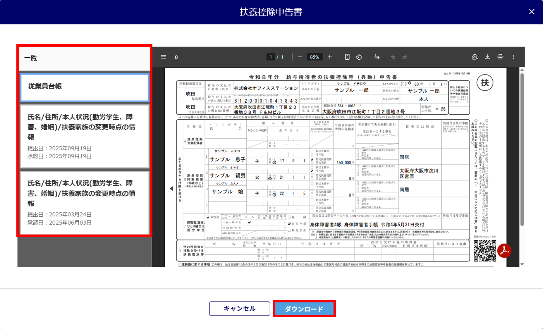 0397|年末調整後に最新の情報で扶養控除申告書を出力できますか?