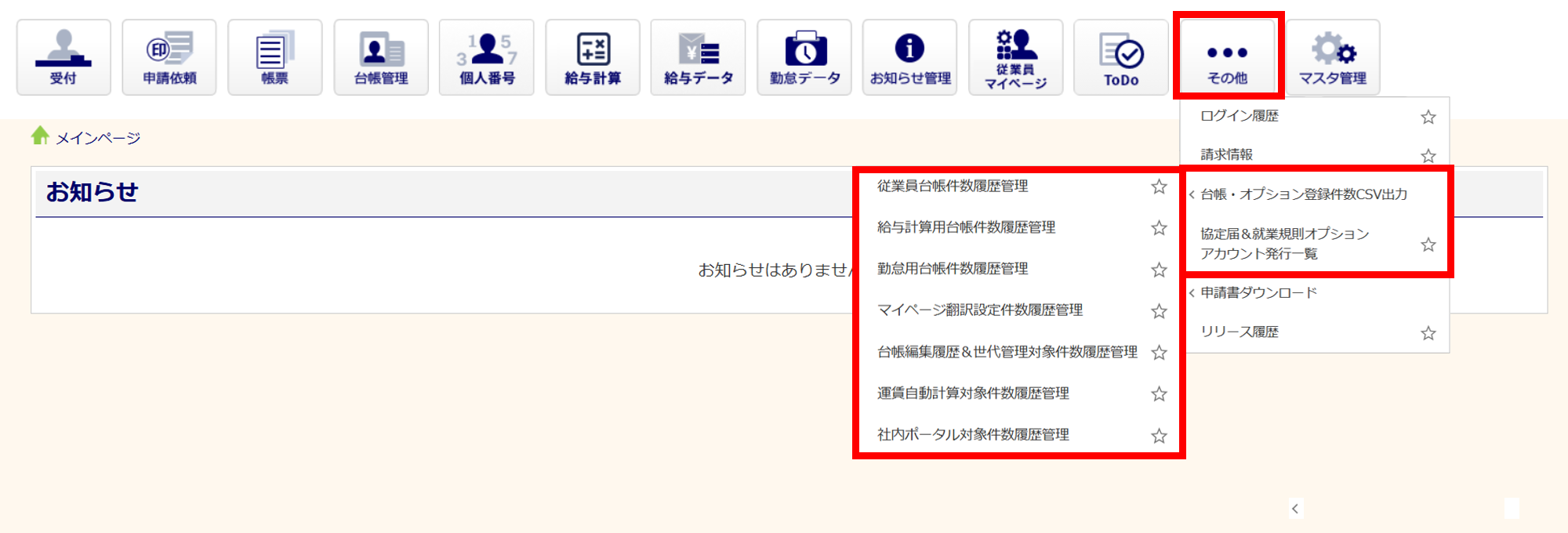 | 給与計算用台帳件数履歴管理 | 給与計算 | |