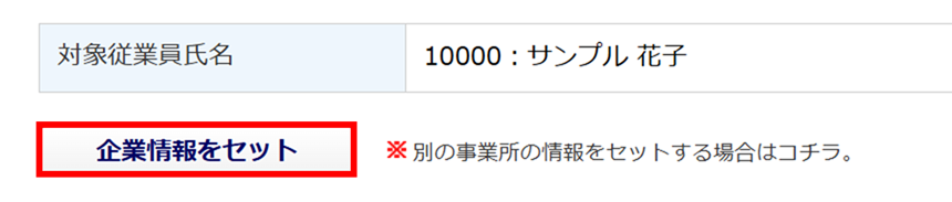 [企業情報をセット]をクリックすると、引用されている内容を「他事業所管理 」に登録している情報に変更できます。詳細は以下の関連記事をご参照ください。