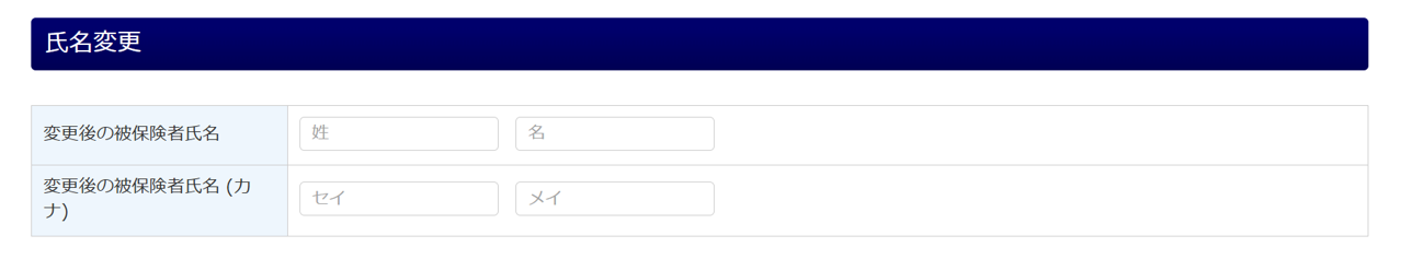 変更後の被保険者氏名     : (姓)・(名)合わせて最大20文字(スペースを含む)
