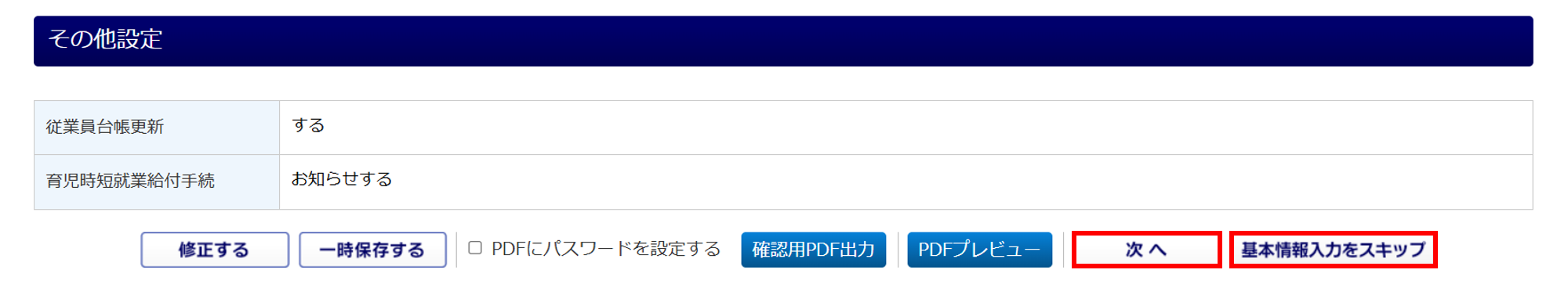 ※基本情報入力画面で不足項目がある場合、スキップボタンは表示されません。