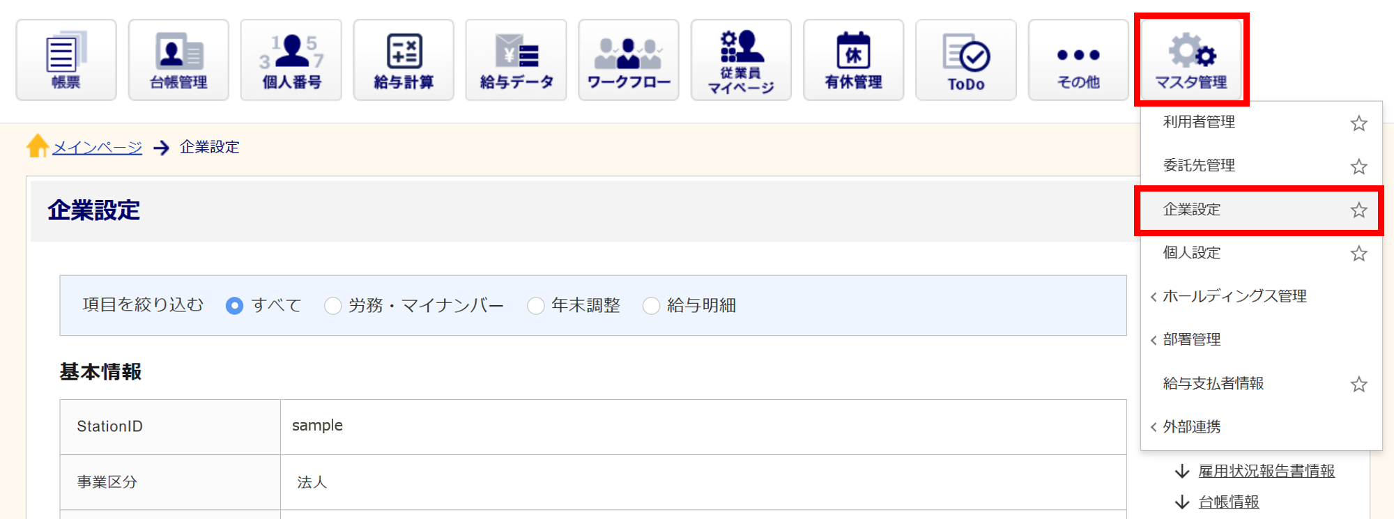 [ワークフロー]アイコンが表示されている場合は、「オフィスステーション 労務」のご契約があります。