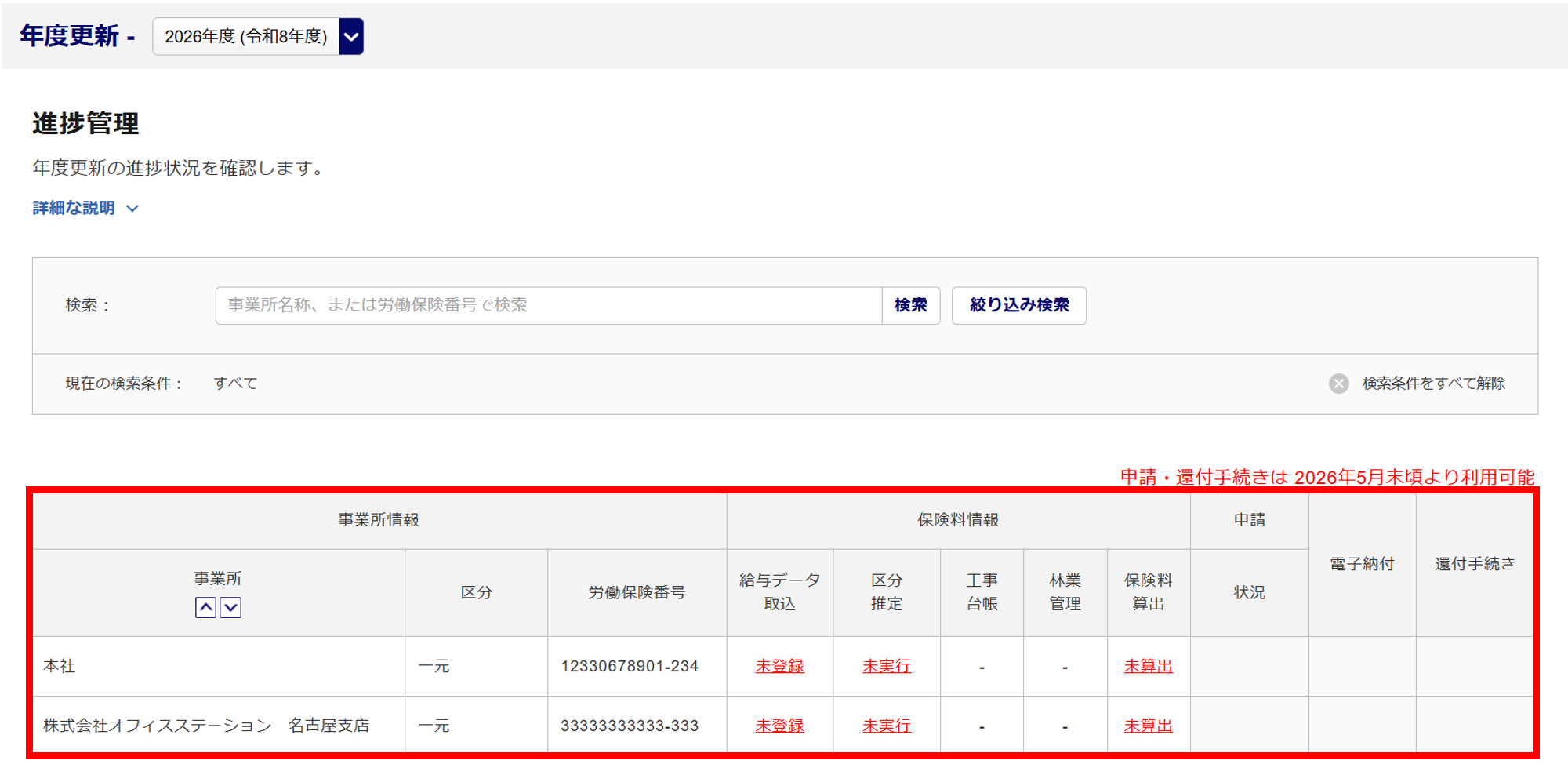 年度更新に関する申請、還付手続きは、機能リリース前となり現在利用できません。