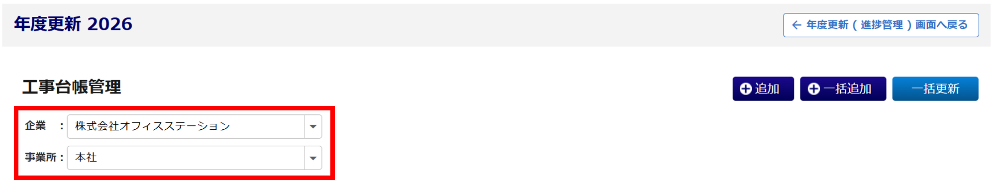 [追加]もしくは[一括追加]をクリックし、工事台帳情報を登録します。