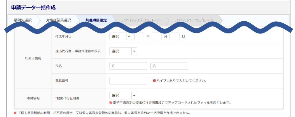 ※一括申請登録時の申請対象従業員を確定するために必要なキーとなる項目です。