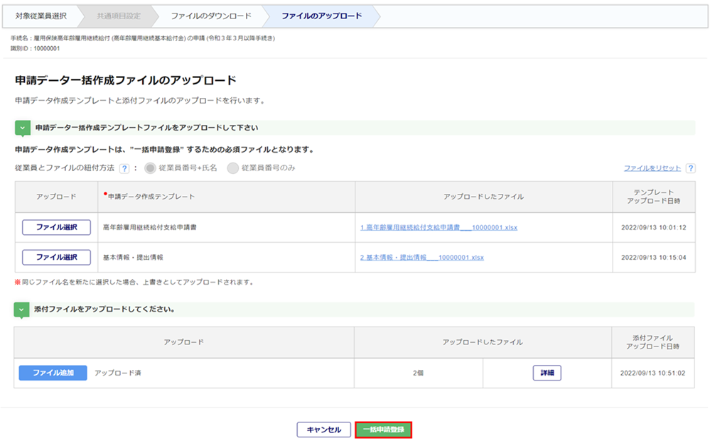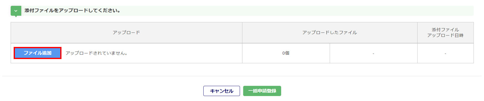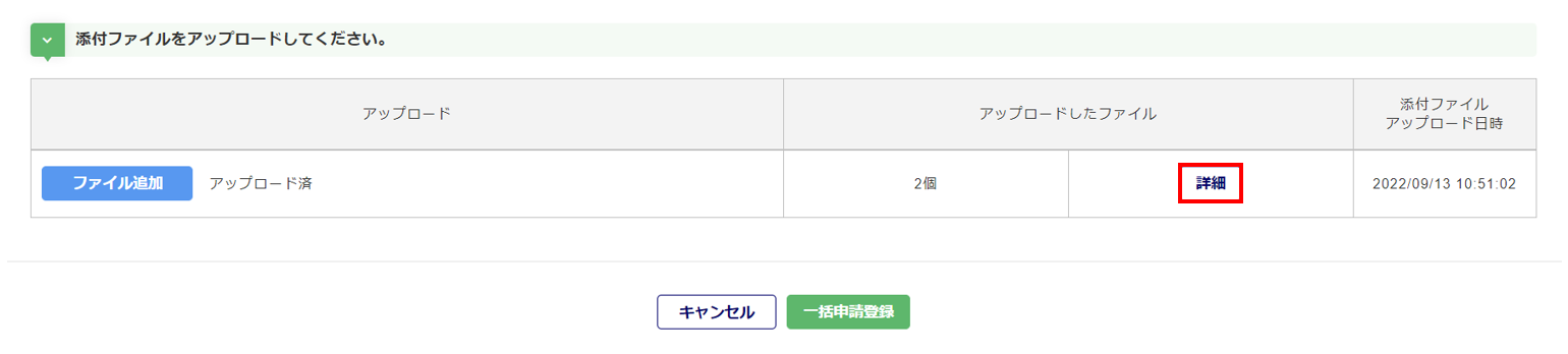 各ファイルのアップロード完了後、[一括申請登録]をクリックします。