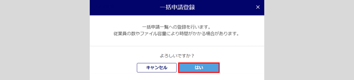 「一括申請登録」ウィンドウが表示されますので、[はい]をクリックします。