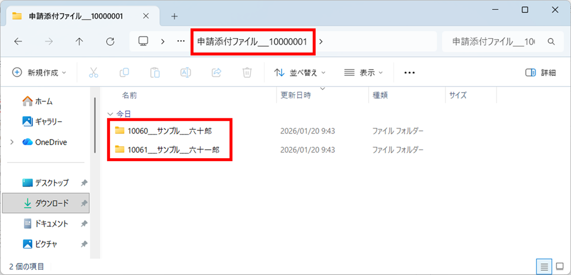 (「申請添付ファイル___10000001」フォルダ 参照)