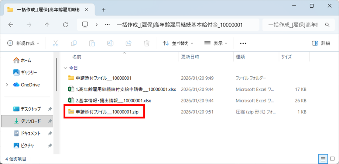 ※ファイル名は、「一括作成_帳票の種類_識別ID.zip」です。