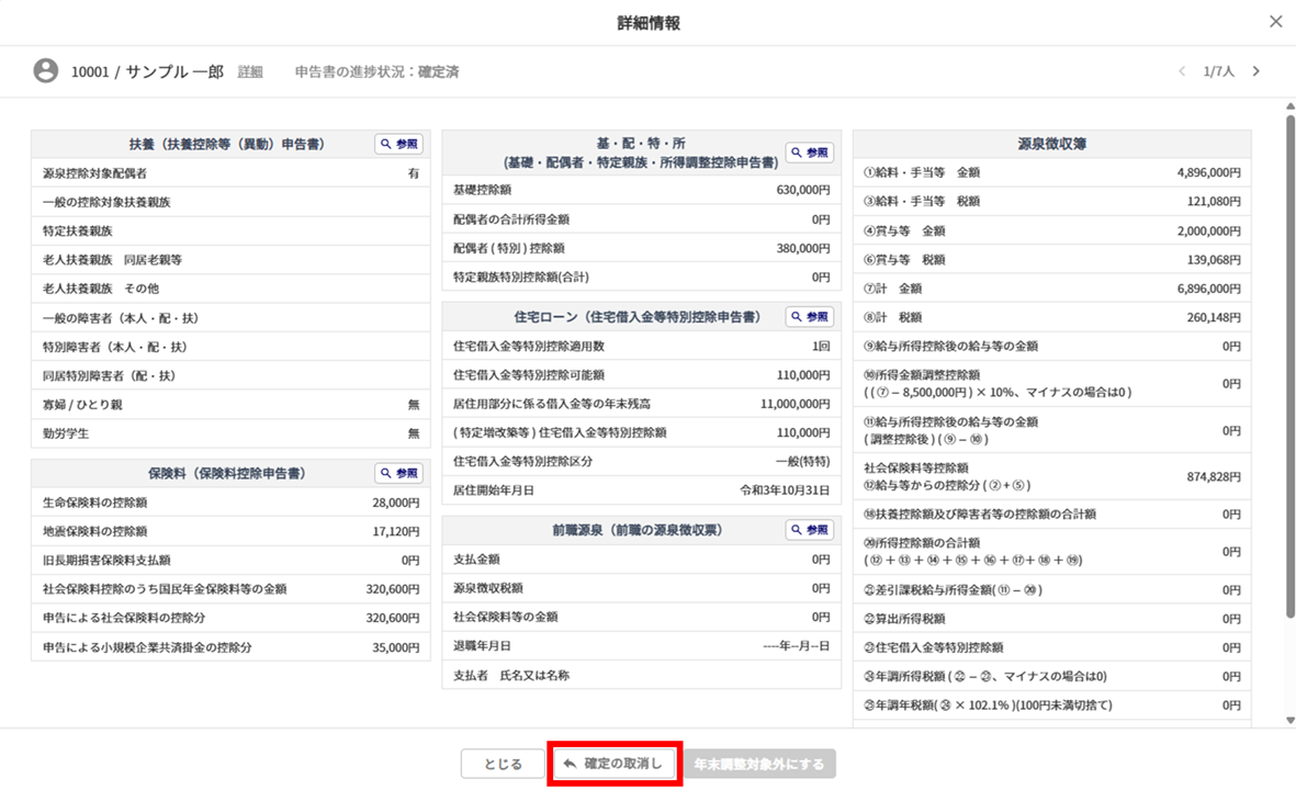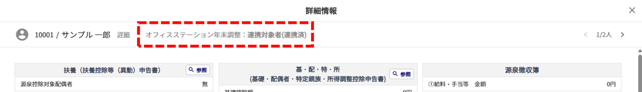 従業員をクリックすると、反映された各申告書の内容が確認できます。