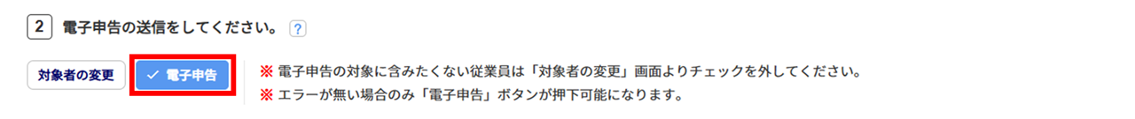 一度、電子申告をおこなうと、チェックをはずした従業員の申告は「eLTAX API 連携」からはできません。