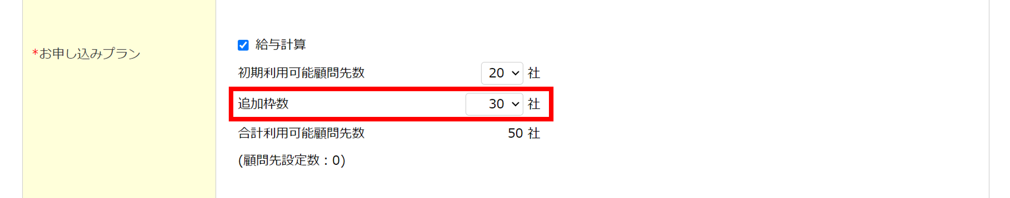 「追加枠数」にて、追加する給与計算機能の枠数を選択します。