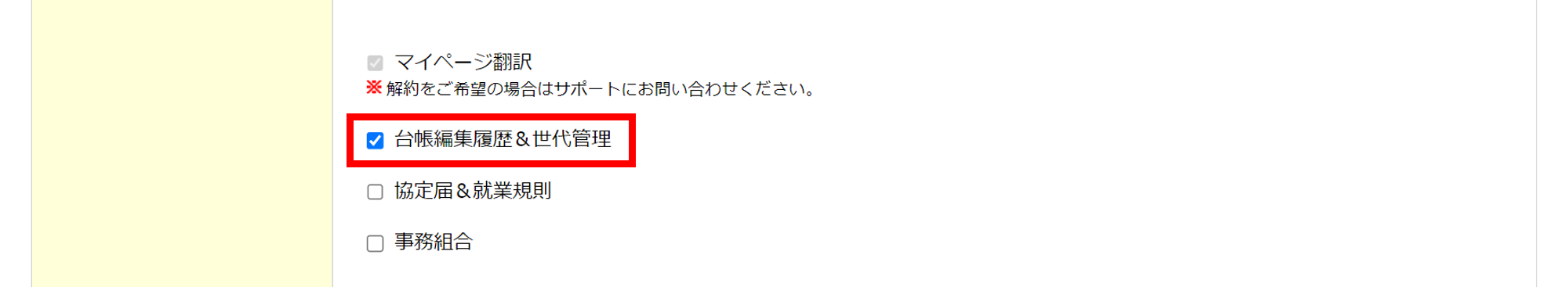 なお、台帳編集履歴&世代管理オプションのご利用料は翌月ご利用分(翌月27日お引き落とし分)から料金が発生します。
