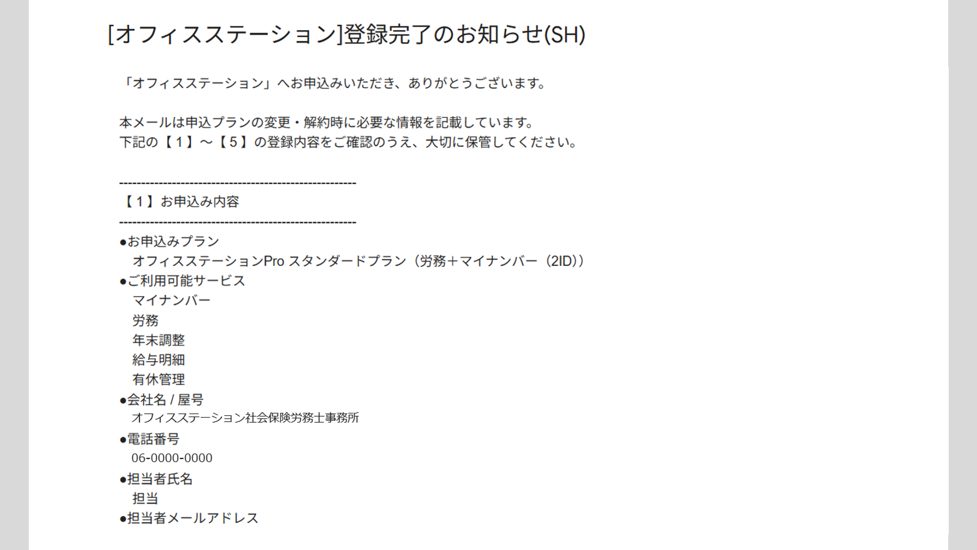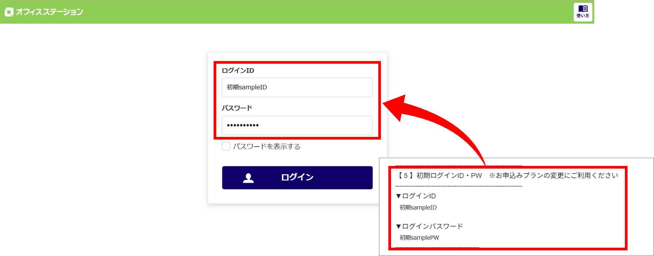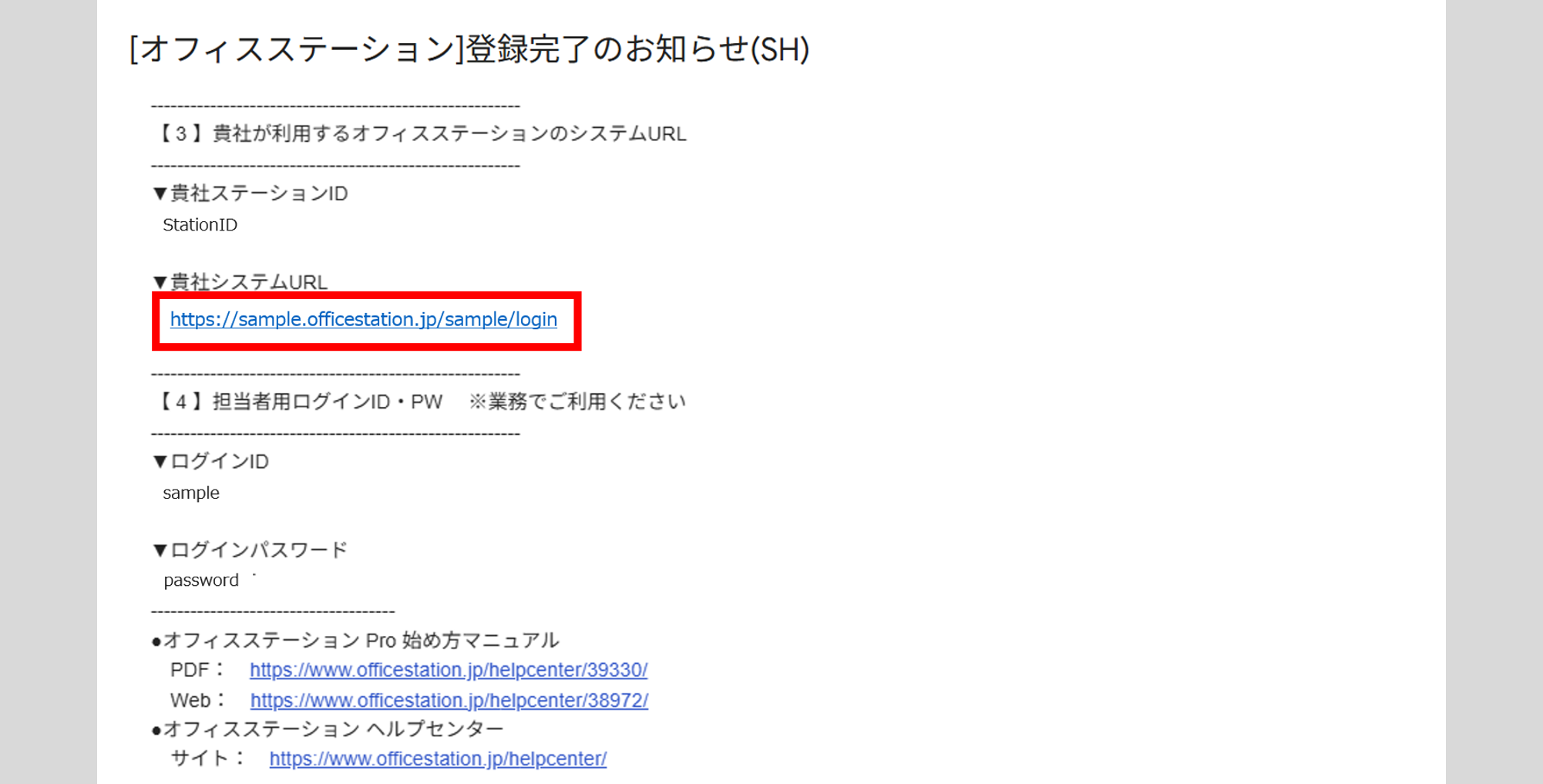 メールに記載の「【 4 】担当者用ログインID・PW」については、オフィスステーションの各製品の機能を操作する際に利用します。