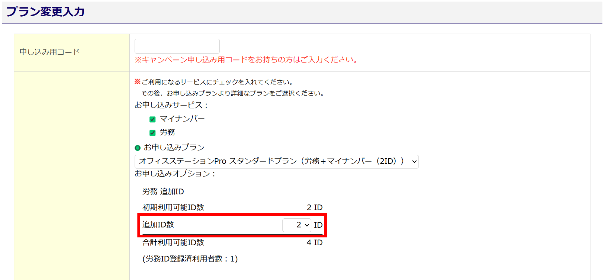 なお、追加したID数は翌月ご利用分(翌月27日お引き落とし分)から料金が発生します。