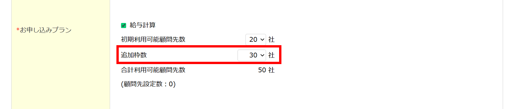 「追加枠数」にて、追加する給与計算機能の枠数を選択します。