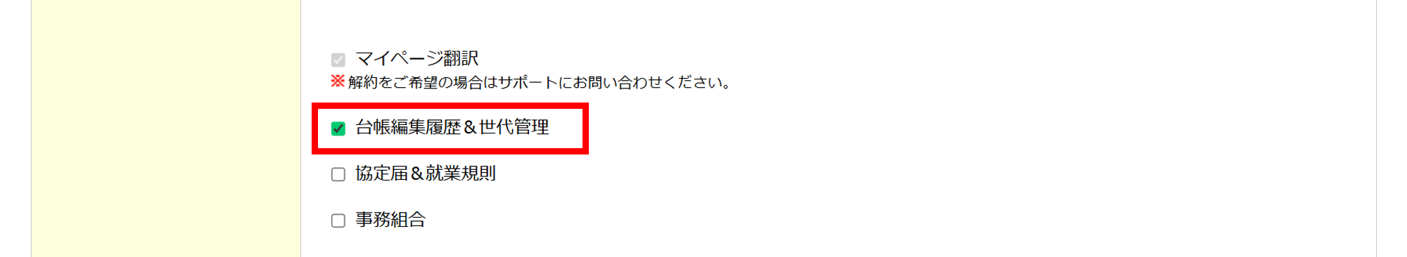 なお、台帳編集履歴&世代管理オプションのご利用料は翌月ご利用分(翌月27日お引き落とし分)から料金が発生します。