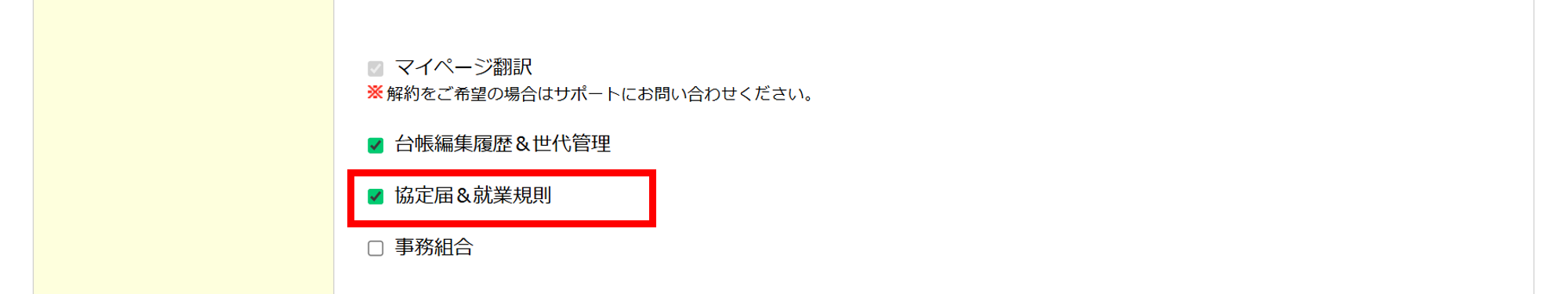 なお、協定届&就業規則オプションのご利用料は翌月ご利用分(翌月27日お引き落とし分)から料金が発生します。協定届&就業規則オプションのご登録料についても、翌月27日に合わせてお引き落としいたします。