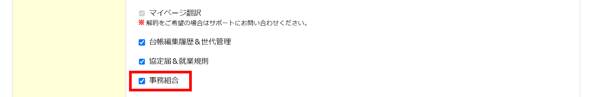 事務組合オプションを申し込んだ場合は、「事務組合登録」画面が表示されます。