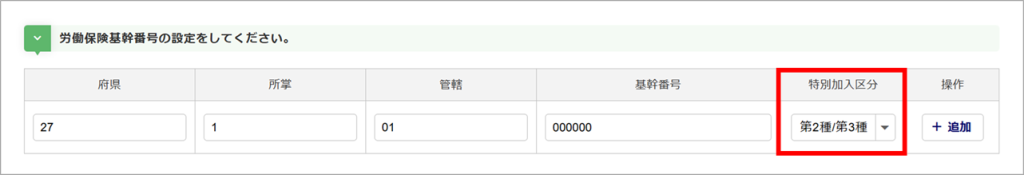 その場合は、「特別加入区分」項目に、「第2種/第3種」を必ずご選択ください。