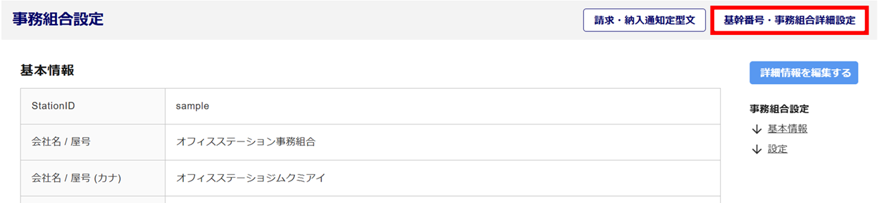 「基幹番号・事務組合詳細設定」の設定