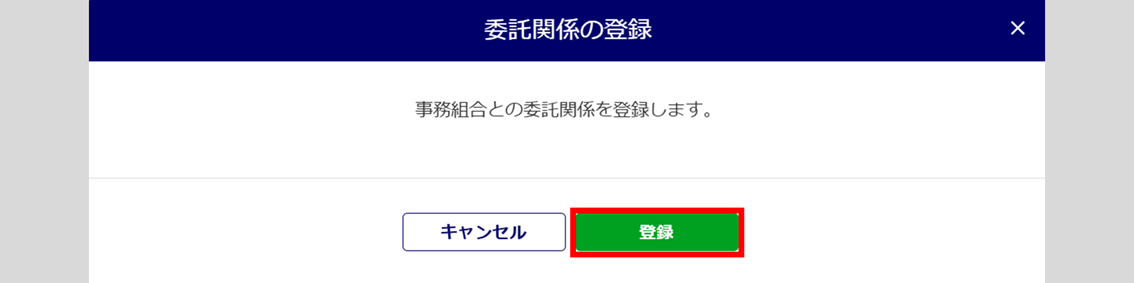 「委託関係の登録」ウィンドウが表示されます。[登録]をクリックします。