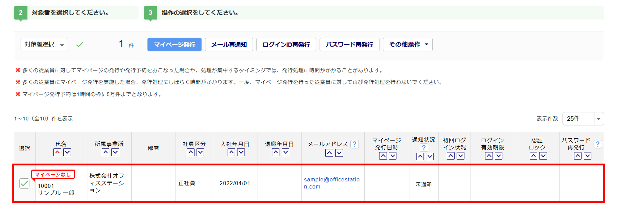 再度、対象従業員にマイページ発行をしてください。詳細は以下のマニュアルをご参照ください。