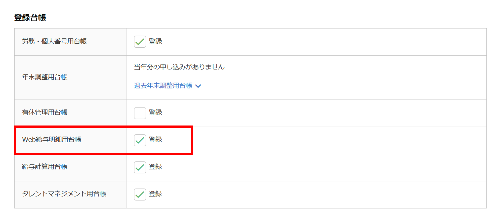 再度、台帳管理で対象従業員の「Web給与明細用台帳」にチェックをつけて登録してください。