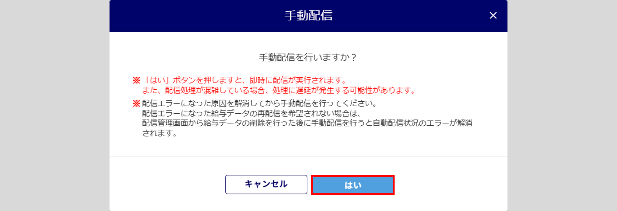 ※必ず配信エラーの原因を解消してから、本操作をおこなってください。