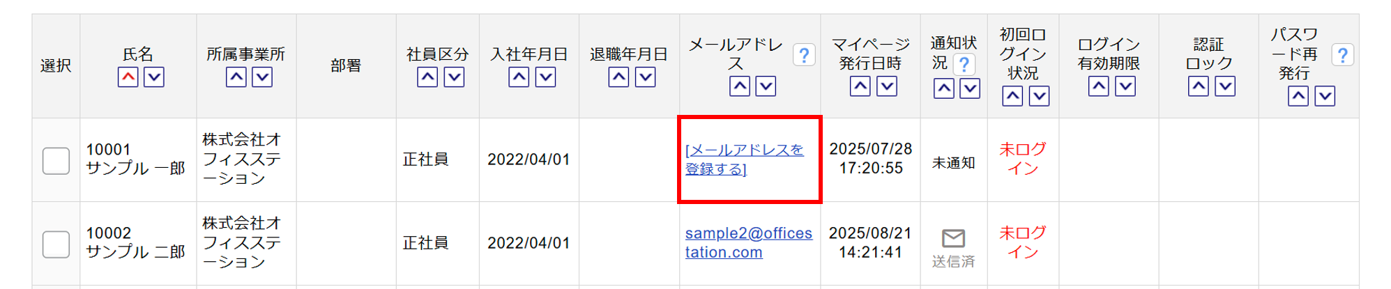 | メールアドレスの削除 | 従業員のメールアドレスを削除している。 ※配信方法が「メール(PDF)」または「メール(テキスト)」の場合 |