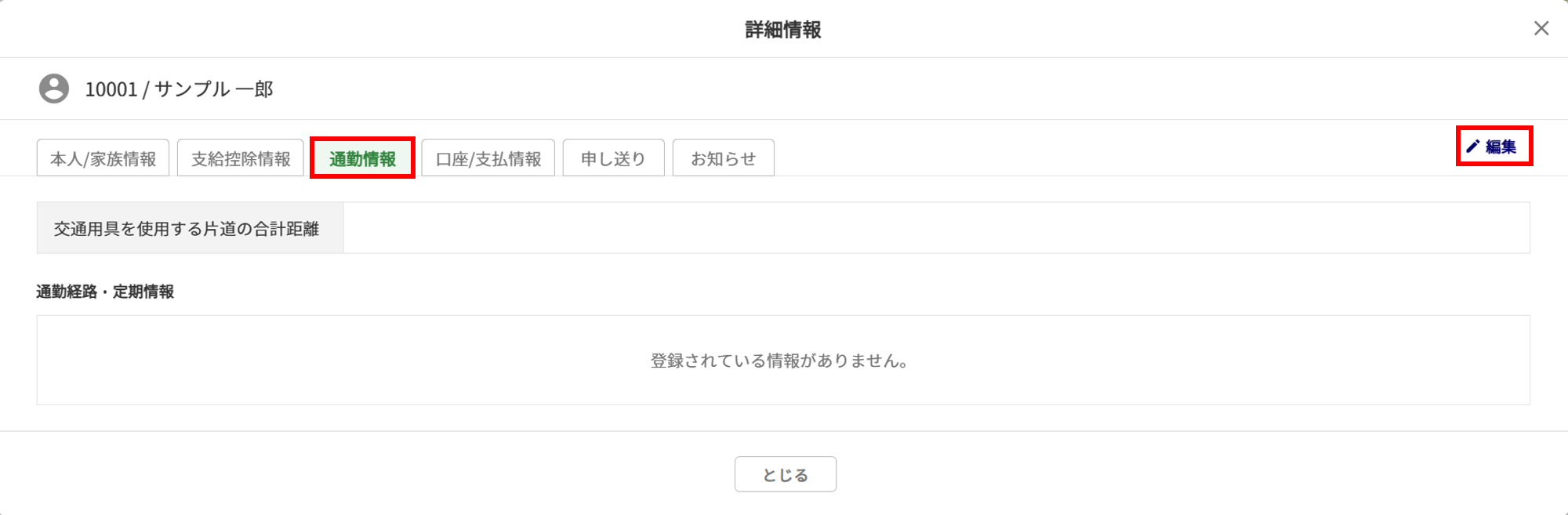 「通勤情報」タブを選択し、[編集]をクリックします。