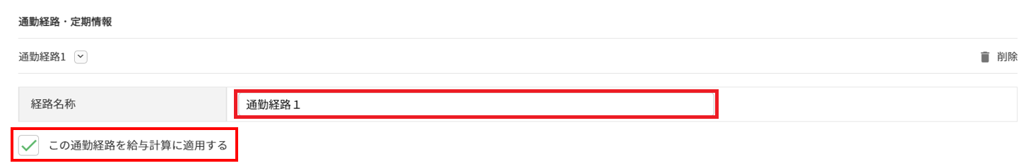 給与計算時に通勤手当として利用する場合は、「この通勤経路を給与計算に適用する」にチェックします。