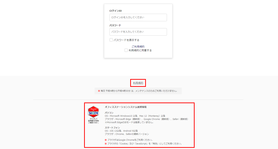 ※ログイン画面下部に表示されている推奨環境でのご利用をお願いいたします。