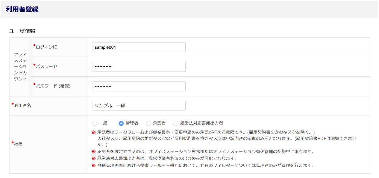 利用者ごとにログインIDを設定し、必要な情報を登録してください。