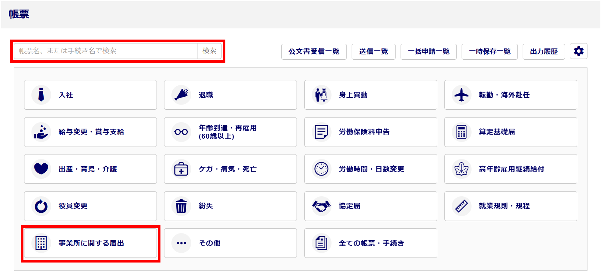 または、[事業所に関する届出]をクリックします。