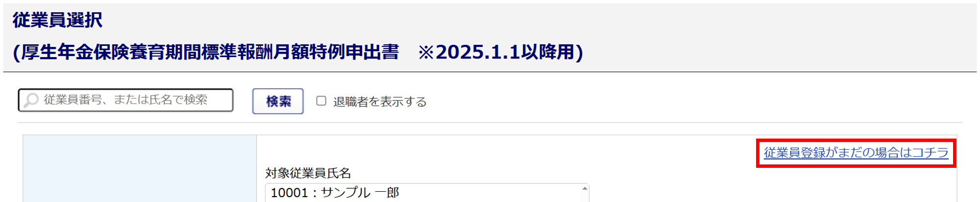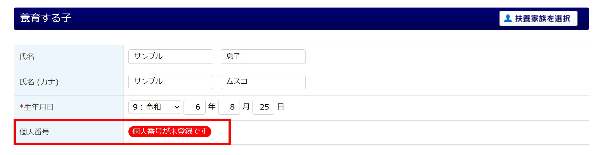 「個人番号が未登録です」と表示されている場合、個人番号の情報がシステムに未登録です。