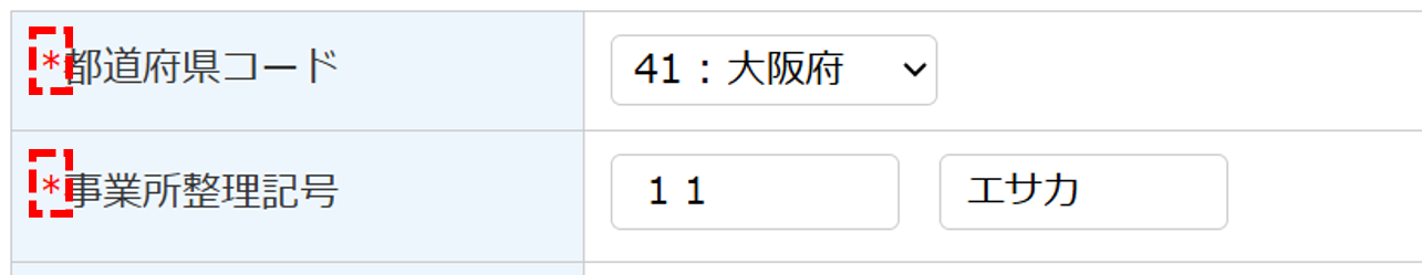 「*」がついている項目は必須入力です。未入力のまま申請することはできません。