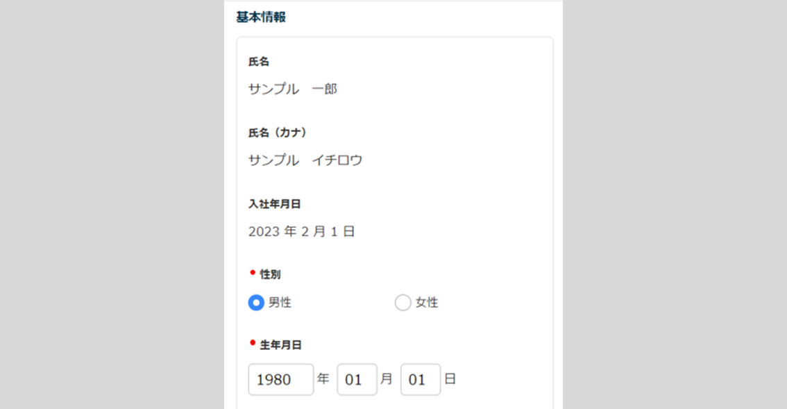 ※入社手続きの「配偶者情報」のグレーアウトが解除されます。 - 配偶者がいない場合