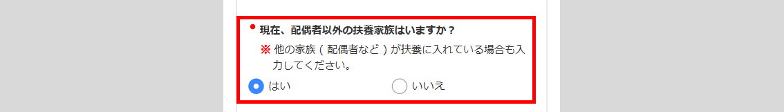 「現在、配偶者以外の扶養家族はいますか?」に「はい」を選択します。